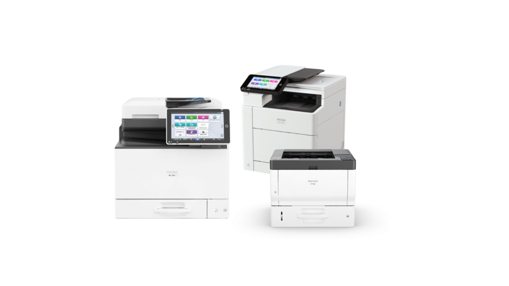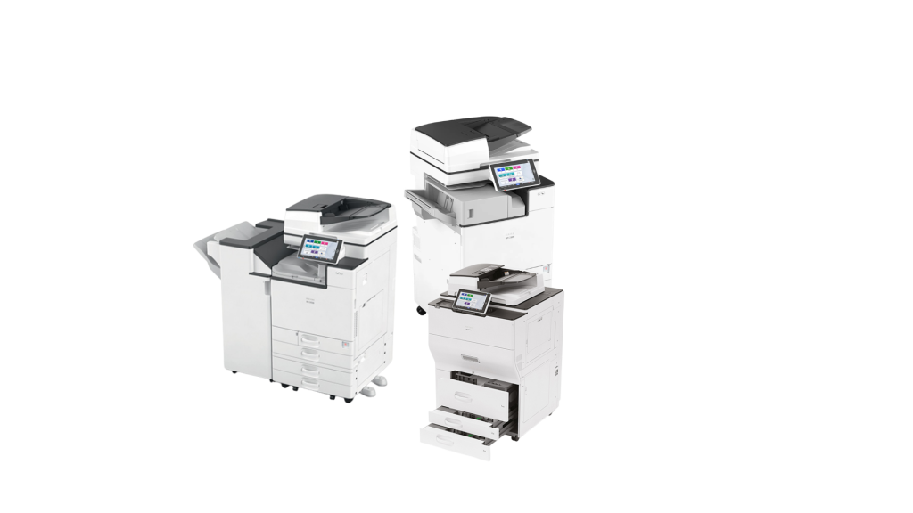 - Impression bureautique : une large gamme d’appareils A4 et A3, monochrome ou couleur, adaptés aussi bien aux petits volumes qu’aux environnements plus exigeants.